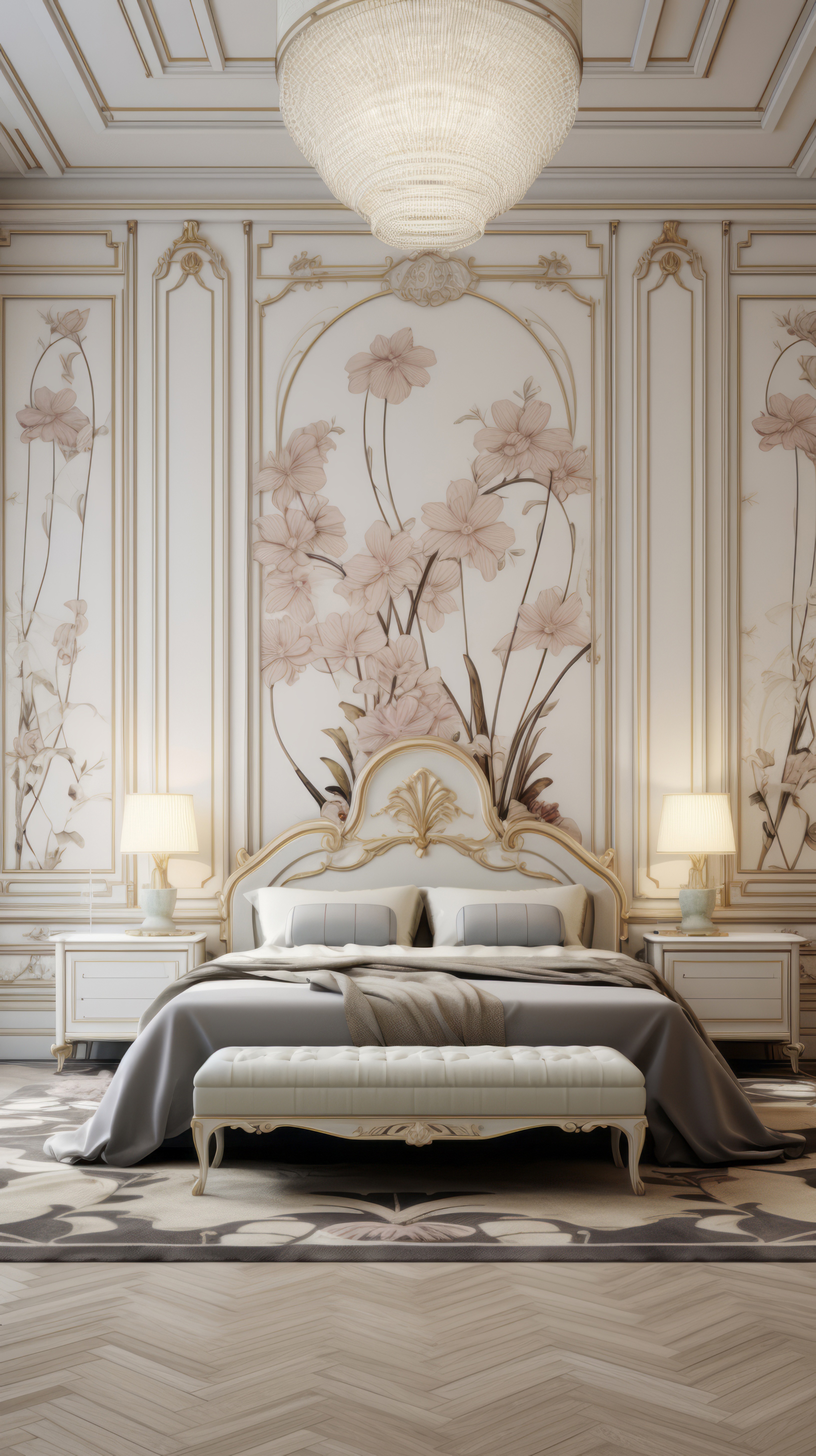 Bu projede, geometrik simetri ve klasik formlar birleştirilerek güçlü bir mekân kimliği oluşturuldu. Koyu tonlu duvar panelleri, altın çerçeveler ve özel üretim mobilyalarla salon, modern bir saray atmosferine dönüştürüldü. White Gold’un lüks anlayışıyla detaylandırılan her obje, mekânın bütünlüğünü ve şıklığını ön plana çıkardı.